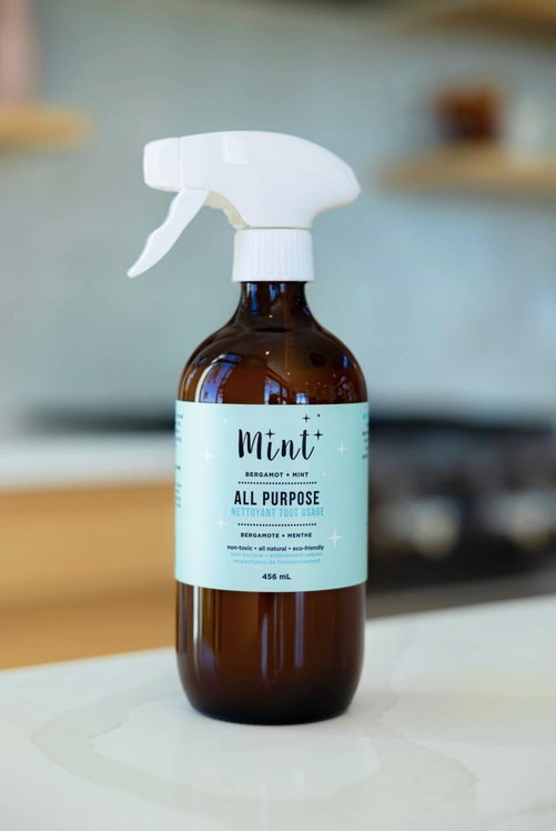 All Purpose Cleaner is made with all-natural grease-fighting properties. Infused with Peppermint, Bergamot, and Tea tree Essential Oils. Safe to use on all surfaces. 456ml reusable glass bottle. Also available in recyclable refill pouches and jugs!
