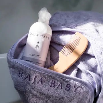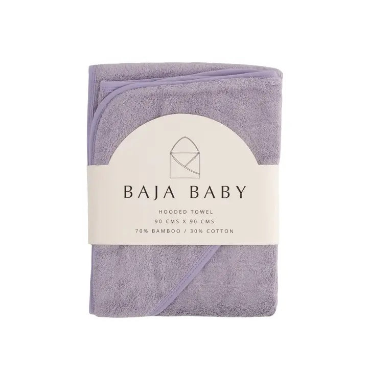 Wrap your little one up in fluffy comfort post-bath or pool day with our 70% bamboo, 30% cotton hooded towels. These towels are oversized at 90 x 90 CMS to completely wrap around your child from baby's first bath up to 3+ years old. The combination of bamboo & cotton fabrics allow for optimal absorbency and they dry super quick -- without that "wet towel" smell that comes from a towel tossed on the floor for a few hours too long! Available in Fresh White with Black Logo Lavender Fields with Contrast Logo Sage with Contrast Logo Citrus Fruit with Contrast Logo Mist with Contract Logo Don't forget to pair them with a matching set of wash cloths & care products from the whole Baja Baby lineup! These towels can be washed in the washing machine & tossed in the dryer. No special maintenance required.