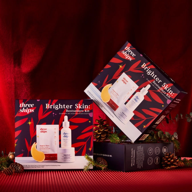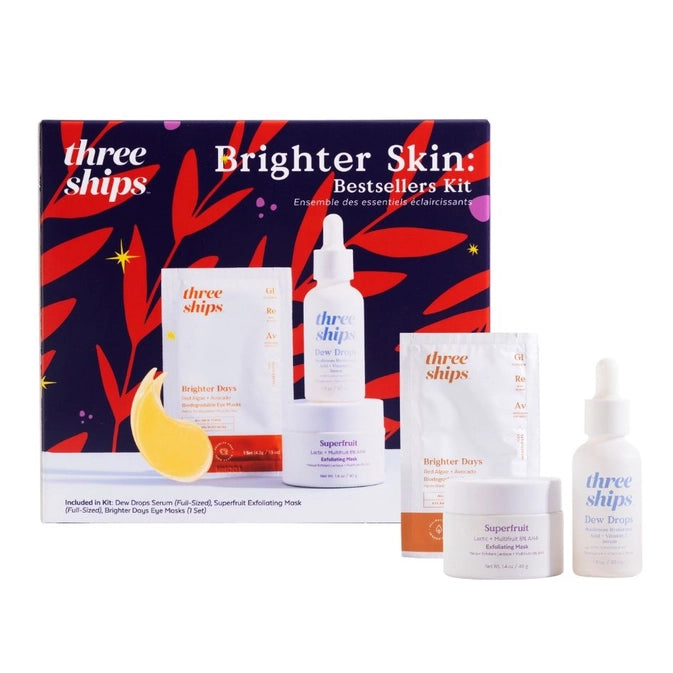33% value! Get your skin looking glowy with this radiance-boosting set powered by gentle plant-based brighteners. First, apply the Superfruit Exfoliating Mask to sweep away dead skin cells that are dulling your glow. The blend of Rice Powder, Lactic Acid and Multi-Fruit Acids reveals brighter skin (no irritation required). Next, apply the Brighter Days Biodegradable Eye Masks to visibly brighten dark circles and nourish your under-eye area. Finish up with Dew Drops, our award-winning serum with Hyaluronic Acid and Vitamin C-packed Kakadu Plum, which deeply hydrates and helps even out skin tone.