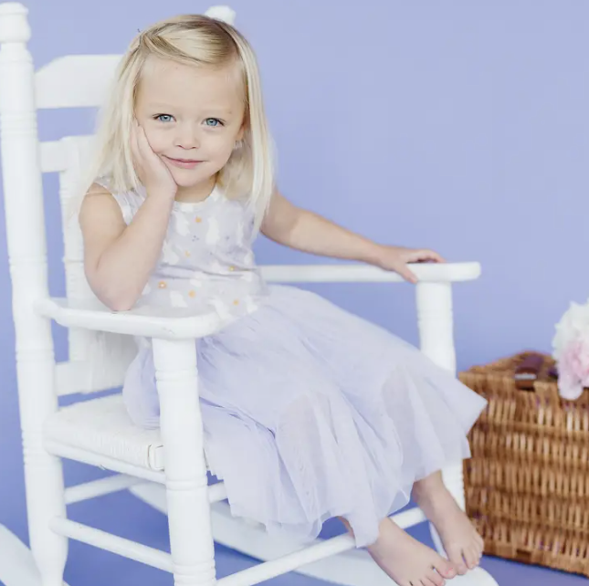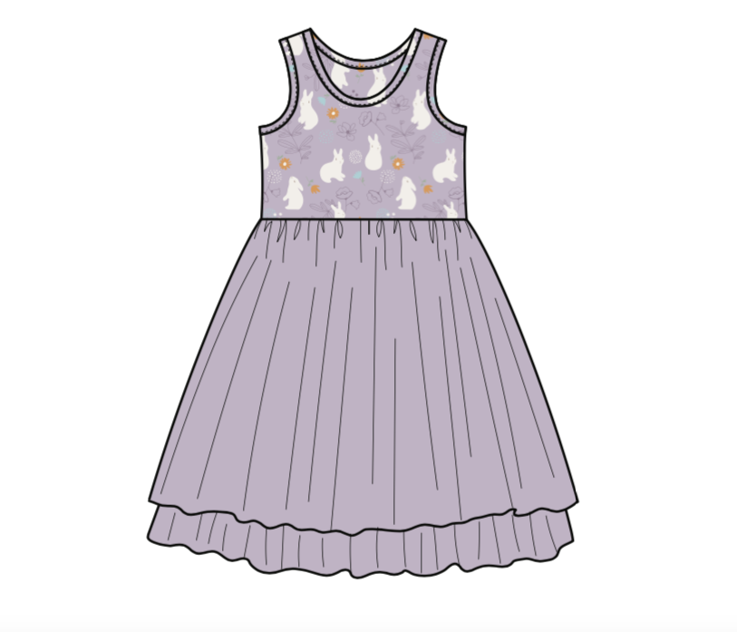This Bunny Hop Tulle Tank Dress is the perfect addition to any wardrobe. Crafted from modal/spandex for ultimate comfort and stretchability, the dress is lined with a soft tulle print featuring a playful bunny design. The fabric blend ensures a snug fit, while the tulle provides a lightweight and breathable feel.