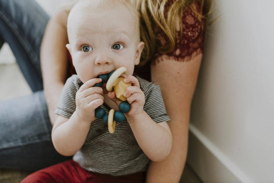 Our best selling teething ring in the best colors to choose from. Doubles as a rattle making the most calming sound to entertain and soothe your little babe. All Products come in packaging with materials, cleaning and safety details.