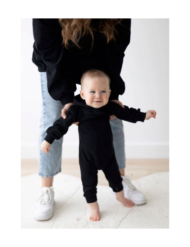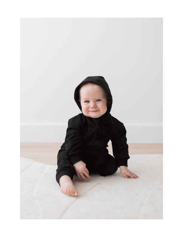Keep your little one cozy in our Organic Hoodie Romper, crafted from our luxurious French Terry. The full-length zipper makes changing a breeze, and the adorable hood adds an extra touch of warmth. This versatile, breathable outfit combines style and practicality for any occasion.