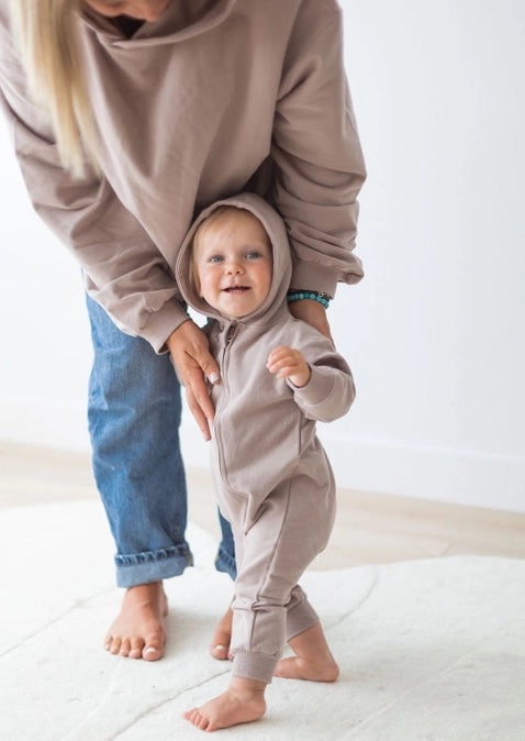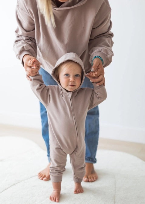 Keep your little one cozy in our Organic Hoodie Romper, crafted from our luxurious French Terry. The full-length zipper makes changing a breeze, and the adorable hood adds an extra touch of warmth. This versatile, breathable outfit combines style and practicality for any occasion.