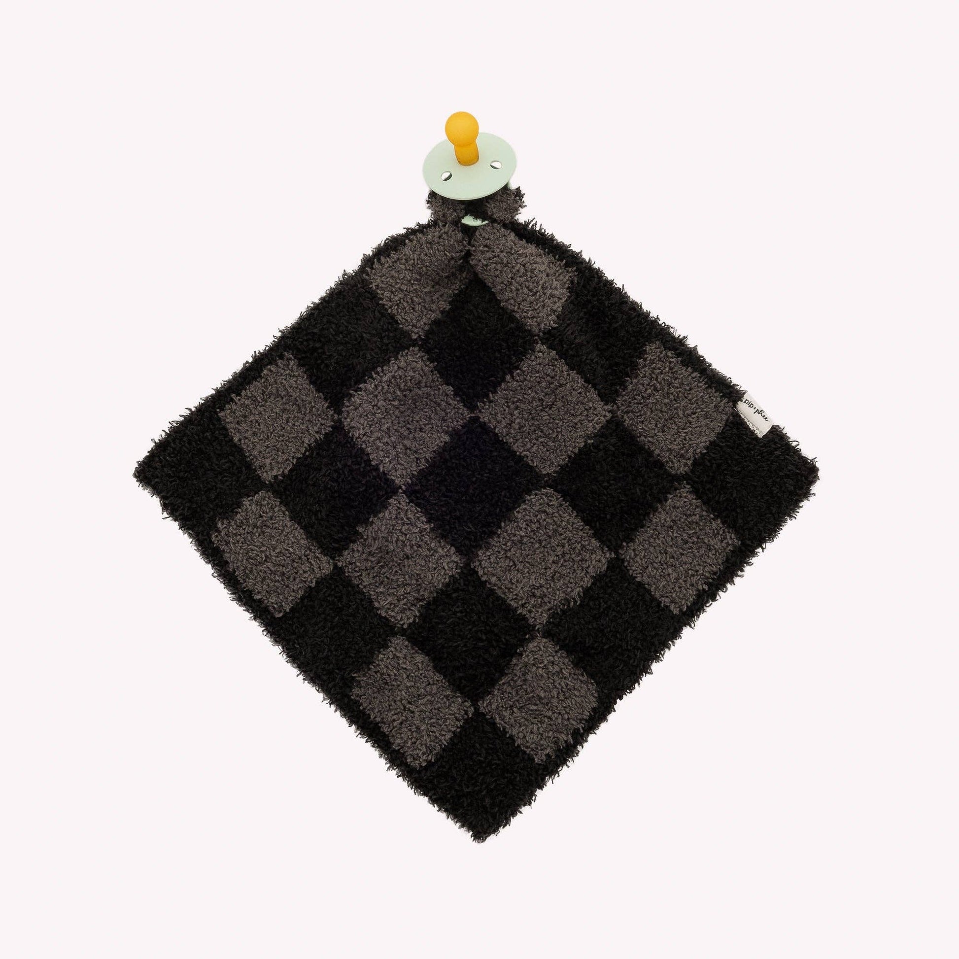 Teeny Blanket (9" x 9") – A petite and adorable option for little hands, featuring a slit in the corner to double as a pacifier holder. Compatible with any pacifier, this blanket grows with your child, transitioning from a pacifier holder to a cuddly companion.