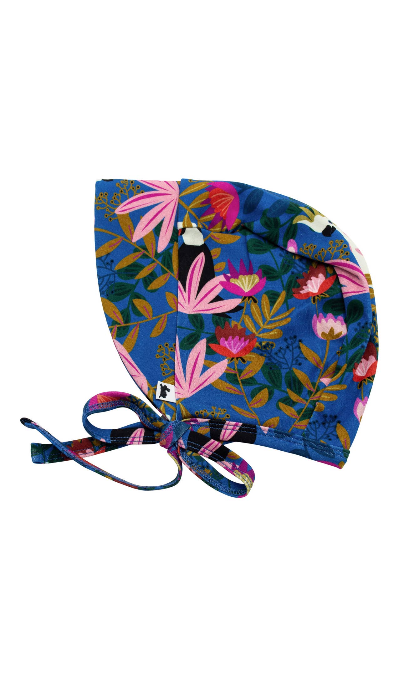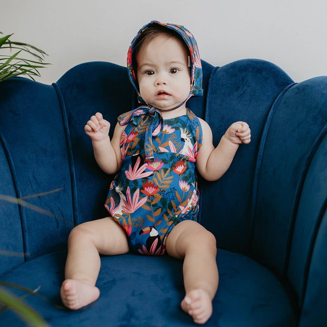 This adorable vintage-inspired bonnet is the perfect hat for a sunny day. The little brim provides shade over your child’s face while the tie under the chin keeps the bonnet in place while she plays. It’s the most comfortable and useful garment you’ll need for the summer sun. Any day can feel like a fiesta in this fun print!