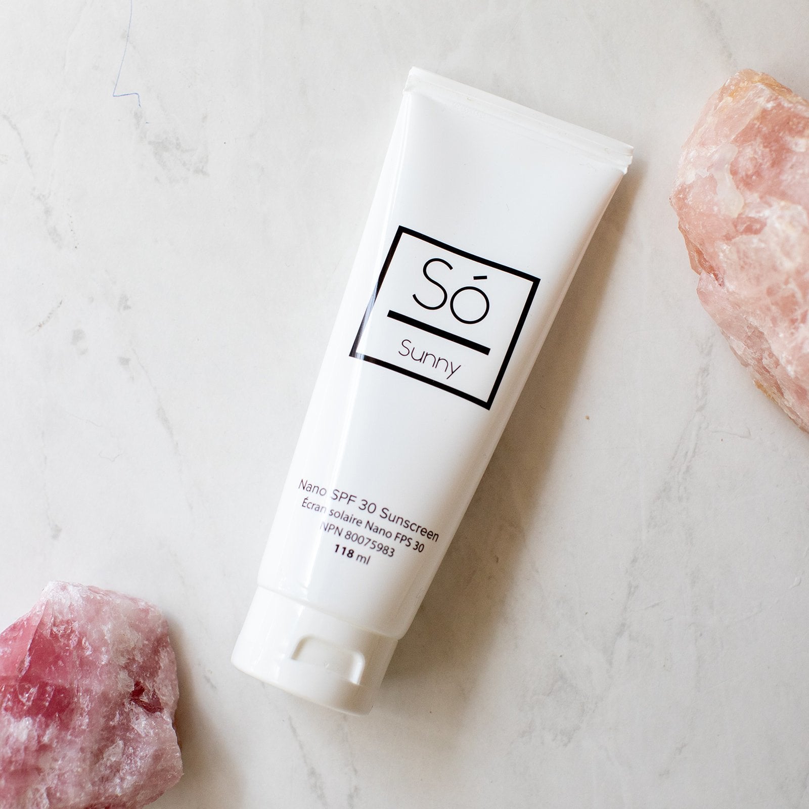 Só Sunny Nano SPF 30 Sunscreen approved by Health Canada under NPN 80075983 helps prevent sunburn and offers broad-spectrum protection against UVA and UVB rays.
